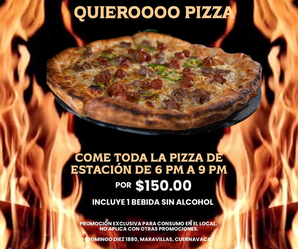 SI PUES TRATTORIA es más que una pizzería; es una experiencia culinaria única que combina lo mejor de la tradición italiana con el sabor morelense. Disfruta de nuestras pizzas a la leña, pastas frescas, cortes de carne y deliciosos postres, en un ambiente acogedor y familiar. Aquí, cada bocado es un placer y cada visita una celebración. ¡Ven y comparte momentos inolvidables con nosotros!